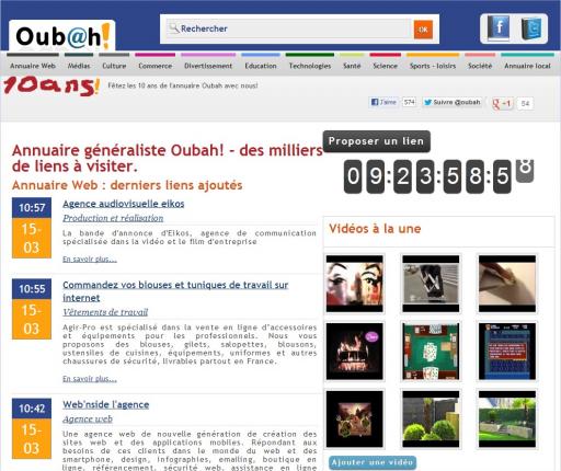Annuaire généraliste Oubah! - des milliers de liens à visiter.